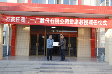 为进一步推行企业新型学徒制计划,深化企业改革,加大技能人才培养力度,以产教融合、校企合作为重要手段,本着服务社会、服务企业的宗旨,在校企共同的合作意愿下,10月21日,理工学院智能制造与技术学院刘恩福教授赴石家庄市阀门一厂股份有限公司接受企业讲席教授聘任,石家庄市阀门一厂股份有限公司人力资源部部长康彦亭出席了聘任仪式。