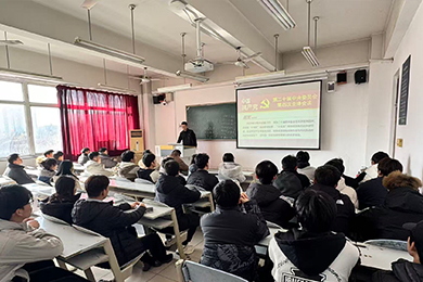 为深入贯彻学习党的二十届四中全会精神,引导全院师生统一思想、凝聚共识,2025年12月2日下午,中共石家庄理工职业学院交通运输与工程学院党总支在鹿泉校区,组织开展了"深学细悟共奋进,踔厉奋发启新程”的专题党课学习活动。学院党总支书记邢浩面向全体党员及学生代表讲授学习贯彻党的二十届四中全会精神专题党课。