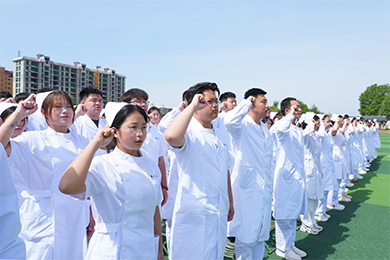 首先由学校各位领导发表致辞。期望全体师生牢记党的教诲,秉持全心全意为人民服务的宗旨,弘扬“燃烧自己,照亮别人”的南丁格尔精神。希望学生将来以昂扬斗志和饱满精神奋战在全国各级医疗卫生战线,在平凡岗位上书写非凡人生,全力守护人民群众生命安全和身体健康。